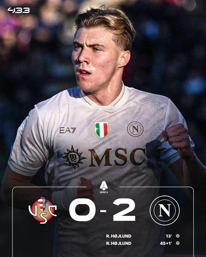 意甲第17輪,克雷莫內(nèi)塞主場(chǎng)對(duì)陣那不勒斯。此役,那不勒斯前鋒霍伊倫上演梅開二度,幫助球隊(duì)在客場(chǎng)全取3分。