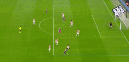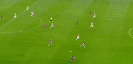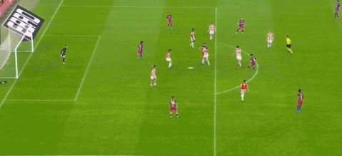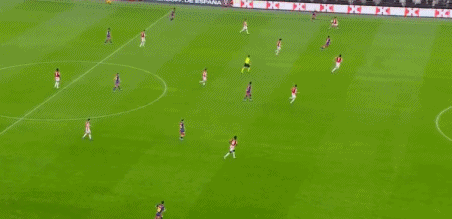 第43分鐘,畢爾巴鄂競技終于迎來機會,貝倫格爾右路傳中,桑切特單刀推射,又不偏不倚擊中立柱彈出。上半場結束,巴薩4球領先,勝負懸念已經消失。