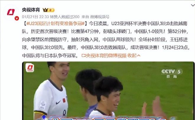央視體育頻道近日正式對外披露:針對中日U23決賽,“原定轉播方案調整,全面進入爭冠備戰節奏”!