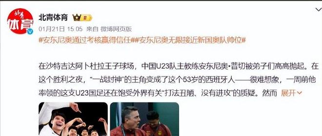據《北京青年報·體育版》權威消息,53歲的西班牙籍教頭安東尼奧已順利通過專項評估考核,正式獲任2005年齡段新一屆中國國奧隊主帥,將率隊全力沖擊2028年洛杉磯奧運會入場券。